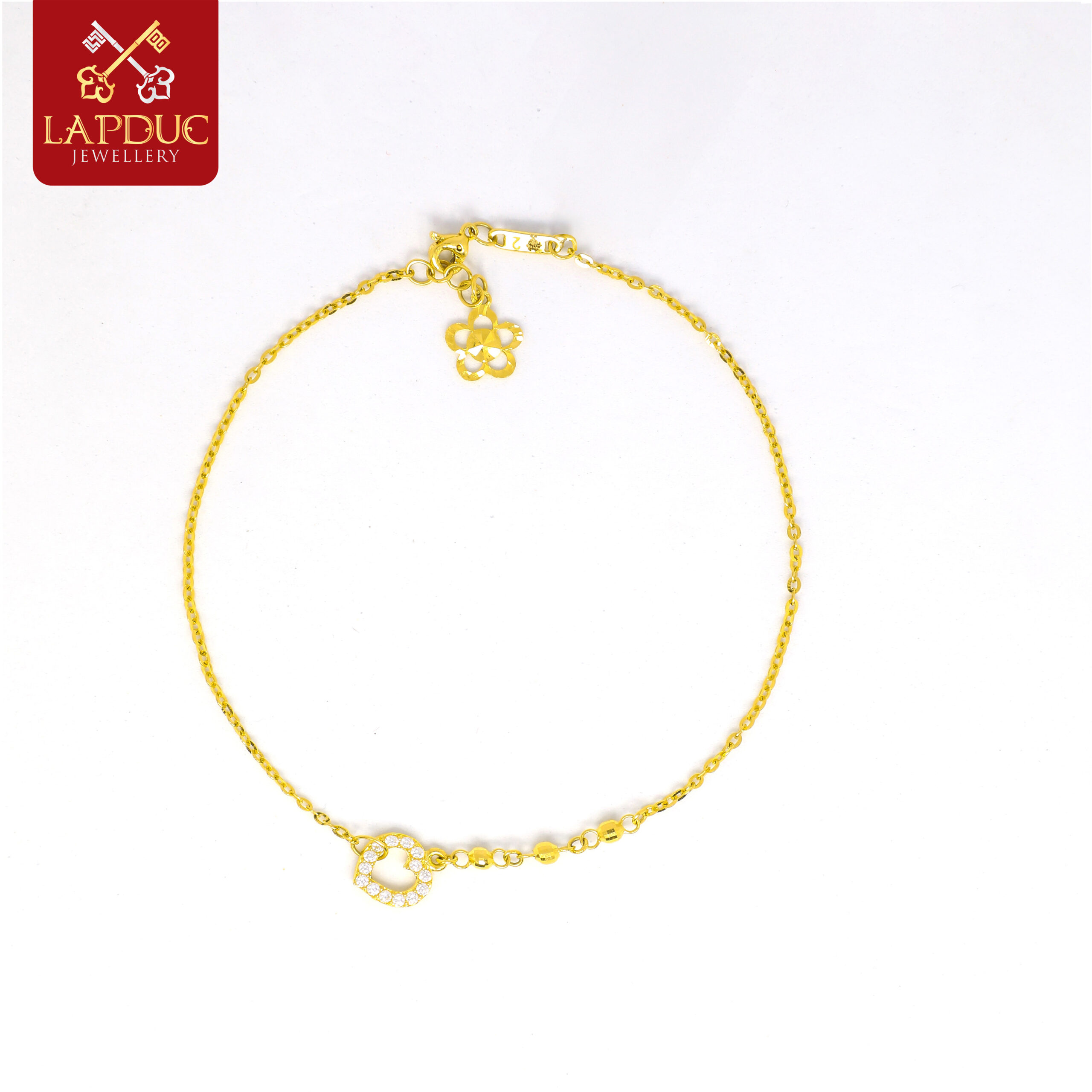 Lắc Chân Cong Tim Tấm Phối 3 Bl là mẫu trang sức tinh tế đến từ Lập Đức Jewellery, sở hữu thiết kế thanh lịch, nhẹ nhàng với điểm nhấn là charm hình trái tim được đính đá lấp lánh.